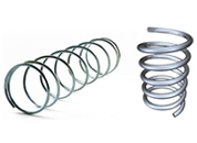 Compression springs are open–coiled helical springs that offer resistance to compressive forces applied axially. Such springs are usually coiled as a constant diameter cylinder; other common forms are conical‚ tapered‚ concave‚ convex‚ and combinations of these. Most compression springs are manufactured in round wire – since this offers the best performance and is readily available and suited to standard coiler tooling – but square‚ rectangular‚ or special–section wire can be specified. |
